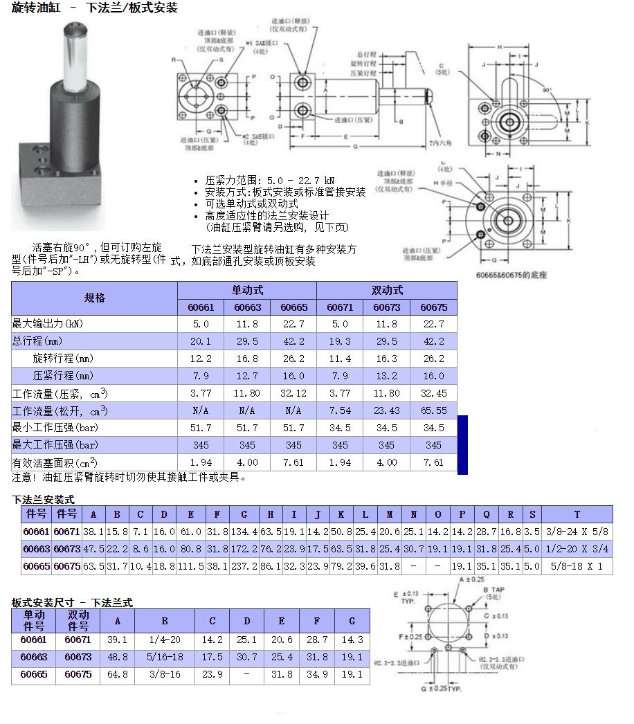 旋轉(zhuǎn)油缸 – 下法蘭/板式安裝