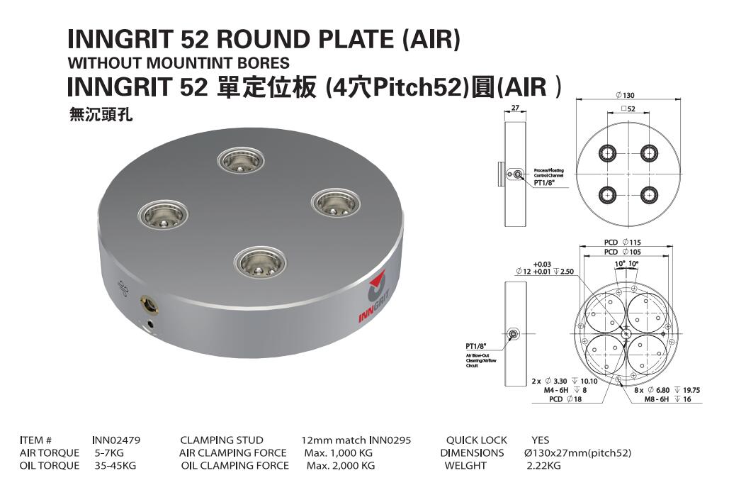 INN02479 單定位板 (4穴Pitch52)圓(AIR)-無沉頭孔