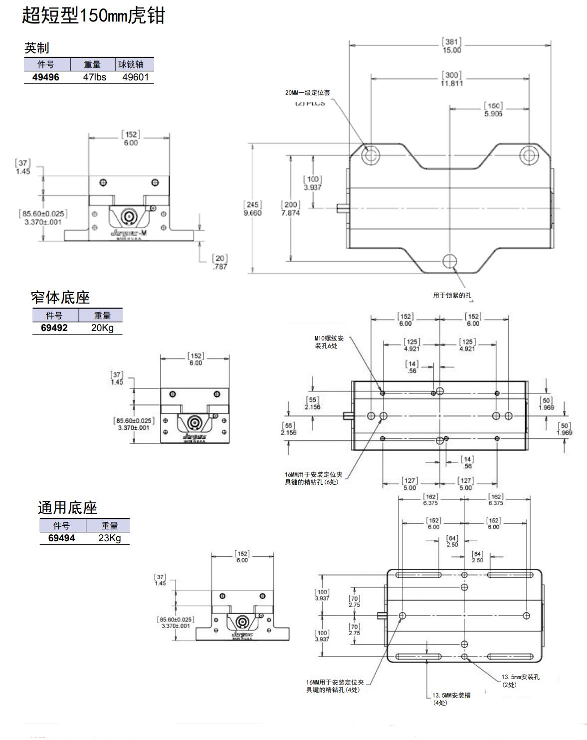 超短型150mm虎鉗