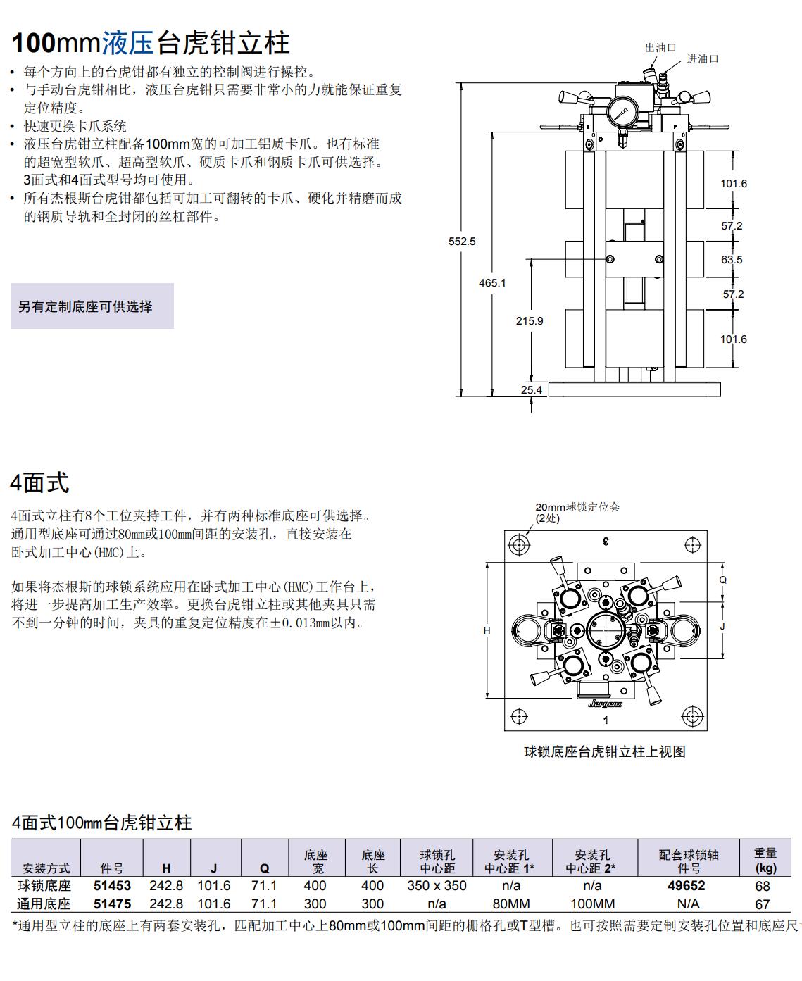 100mm液壓臺(tái)虎鉗立柱 4面式